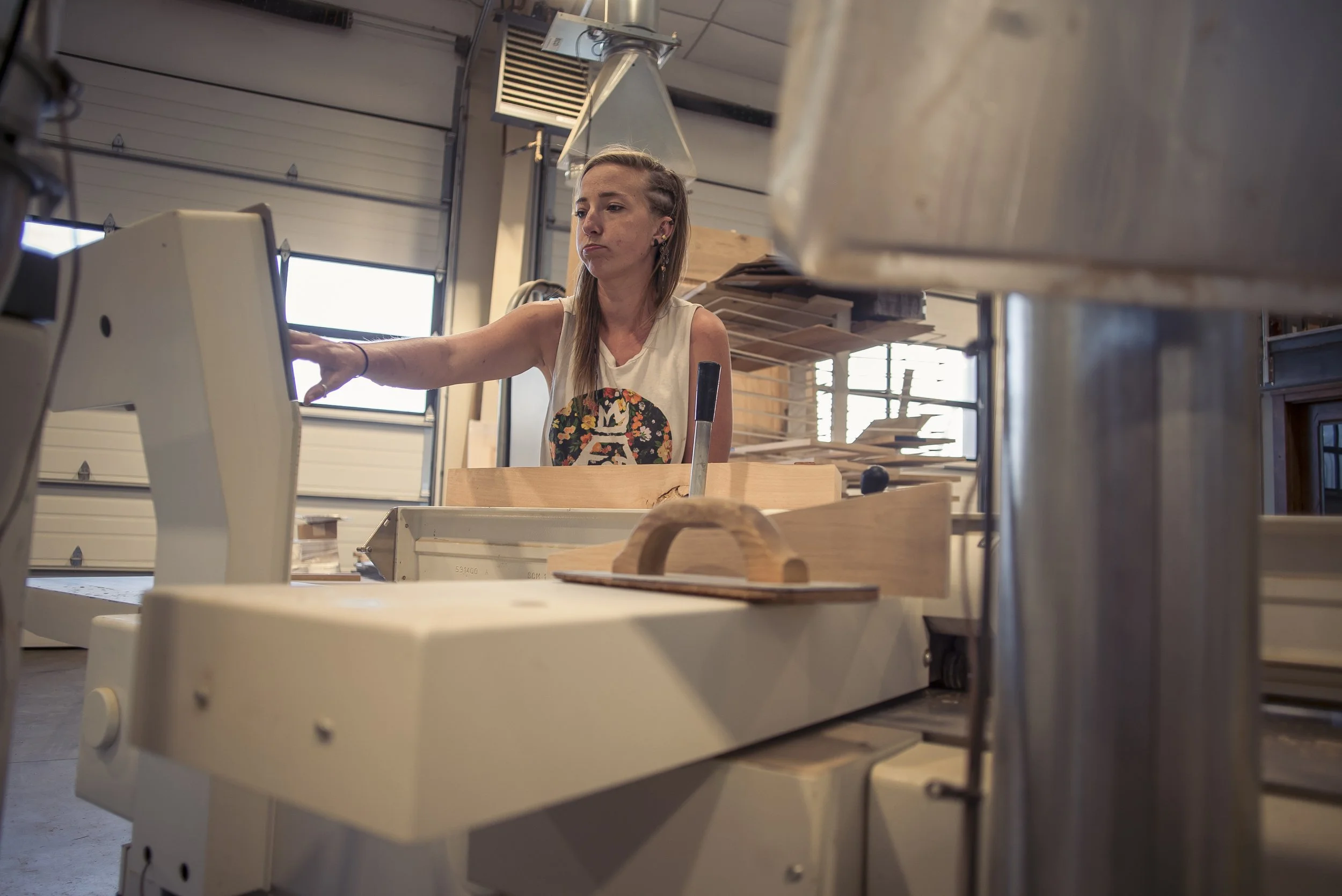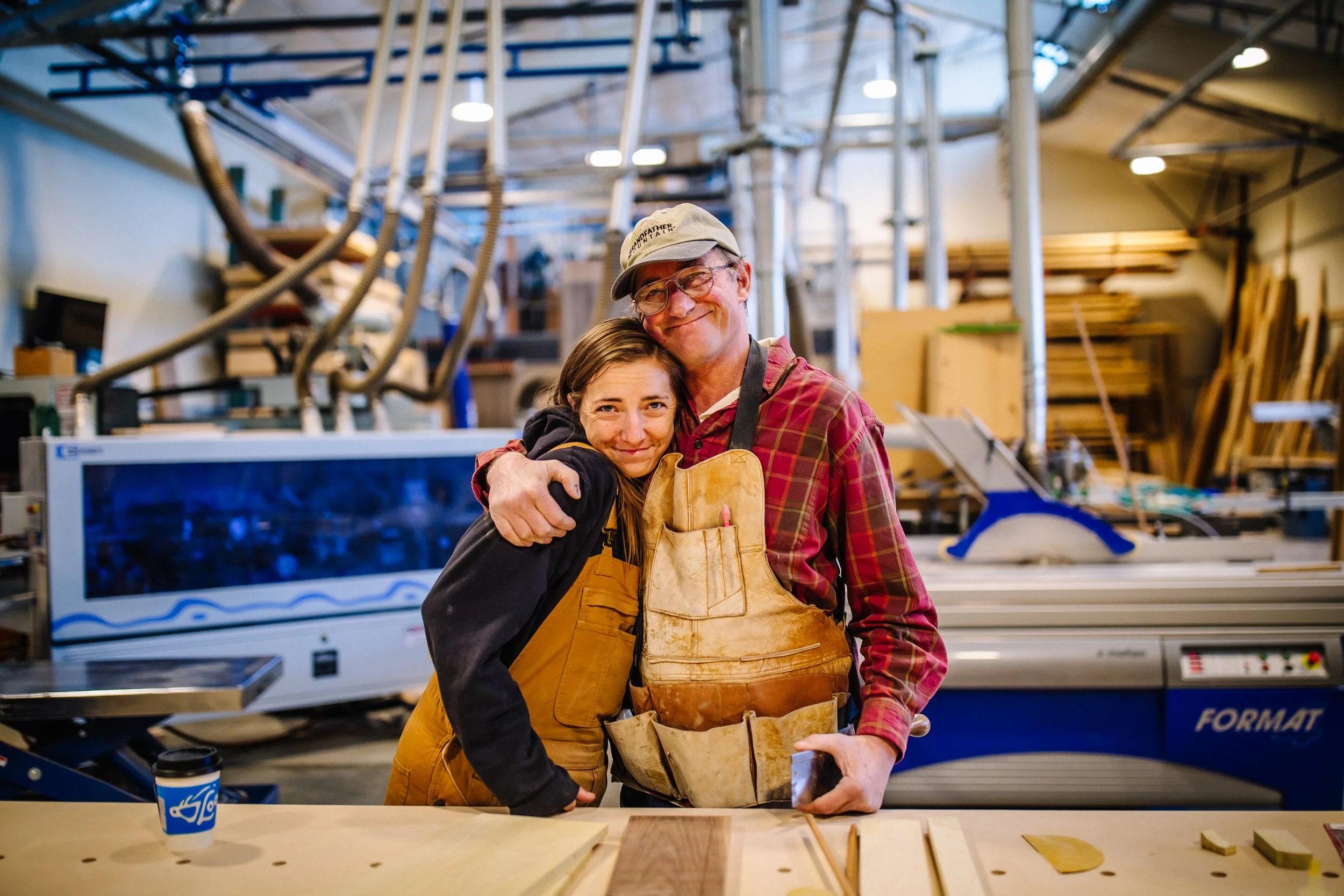 Second generation woodworker, Heidi Kuznitz designs and builds, custom, handcrafted, one-of-a-kind functional art. Among other things, she builds small furniture, longboards, jewelry and charcuterie boards using local and exotic hardwoods. Born and raised in the eastern Sierra, Heidi crafts her wares to reflect the inspiration she finds in the mountains and forests she calls home. Incorporating elements of nature, and excellence in craftsmanship, Kooks Industries produces high quality products that bring art and nature to your experiences. Amputee survivor, Heidi has overcome a lot in life. She stands firm (on the leg she has left) in her passion of providing the opportunity to express and access the happiness of life through creativity, family, and woodworking.